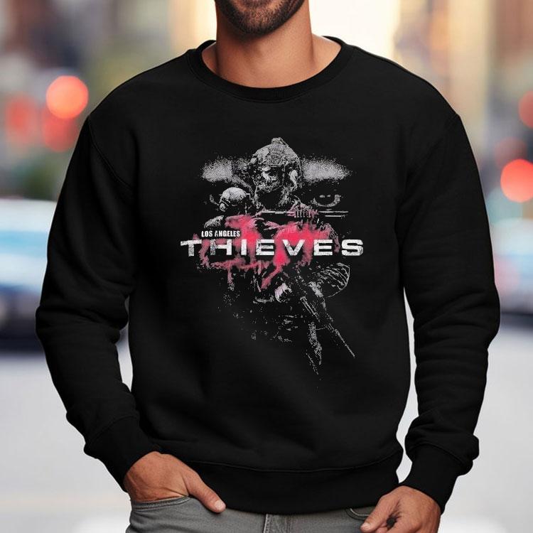 Effortless, everyday style with 100 Thieves Los Angeles Warfare Shirt, the streets of Los Angeles are buzzing with excitement as the newest release from 100 Thieves has hit the shelves. The limited edition Los Angeles Warfare shirt has become the must-have item for fans of the popular gaming and lifestyle brand. With its sleek design and bold statement, it’s the perfect addition to any collection.