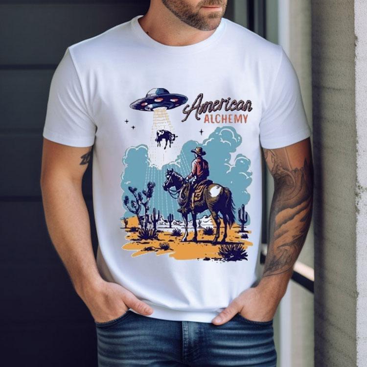 Versatile style, always chic with American Alchemy Cowboy Ufo Shirt, from the Wild West to deep space, the American Alchemy Cowboy UFO Shirt combines the mysteries of the old frontier with the wonders of the unknown. This unique blend of Americana and alchemy creates a one-of-a-kind shirt that is sure to turn heads and spark curiosity. Embrace the otherworldly with this bold fashion statement.