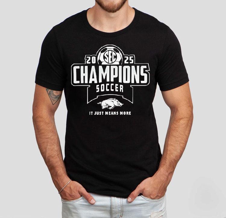 Everyday comfort redefined with Arkansas Razorbacks 2025 Sec Champions Soccer It Just Neans Nore Shirt, the Arkansas Razorbacks have long been a powerhouse in the world of college athletics, and in 2025, they solidified their dominance by becoming the SEC Champions in soccer. With their eyes on the prize and determination in their hearts, they proudly donned their new “It Just Means More” shirts, symbolizing their dedication to the sport and their team.