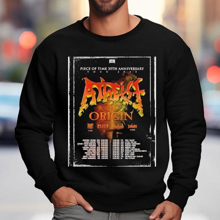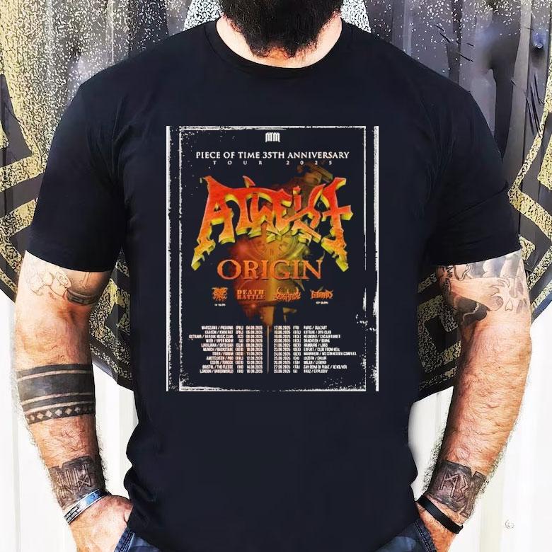 Versatile charm, timeless appeal with Atheist Piece Of Time 35th Anniversary Tour 2025 Dates List Start In Warsaw Poland On September 4 Shirt, celebrate the 35th anniversary of Atheist’s groundbreaking album ‘Piece of Time’ with their upcoming tour in 2025. Kicking off in Warsaw, Poland on September 4th, the band will bring their iconic sound to fans across Europe. Get ready to rock out in style with the limited edition tour shirt, only available at the shows.