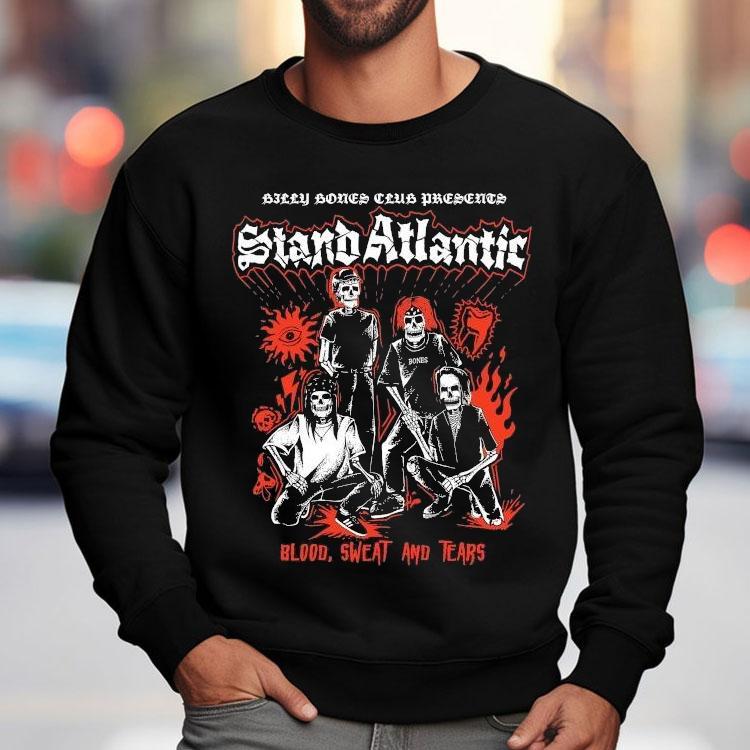 Versatile fashion at its best with Billy Bones Club Stand Atlantic X Bones Band Blood Sweat And Tears Shirt, “Welcome to the Billy Bones Club, where the energetic combination of Stand Atlantic’s punk rock sound and the raw talent of Bones Band create a show like no other. As the crowd chants along to each song, you can feel the blood, sweat, and tears being poured into every performance, all while sporting your limited edition Blood Sweat and Tears shirt.”