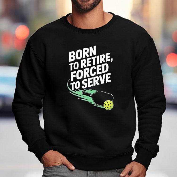 Wear it well, wear it often with Born To Retire Forced To Serve Pickleball Shirt, retirement is meant to be a time for relaxation and enjoying life, but for many seniors, it can also bring unexpected challenges. The “Born To Retire Forced To Serve Pickleball” shirt is a humorous nod to the popular retirement pastime of pickleball, highlighting the unexpected twist that can come with this stage of life.