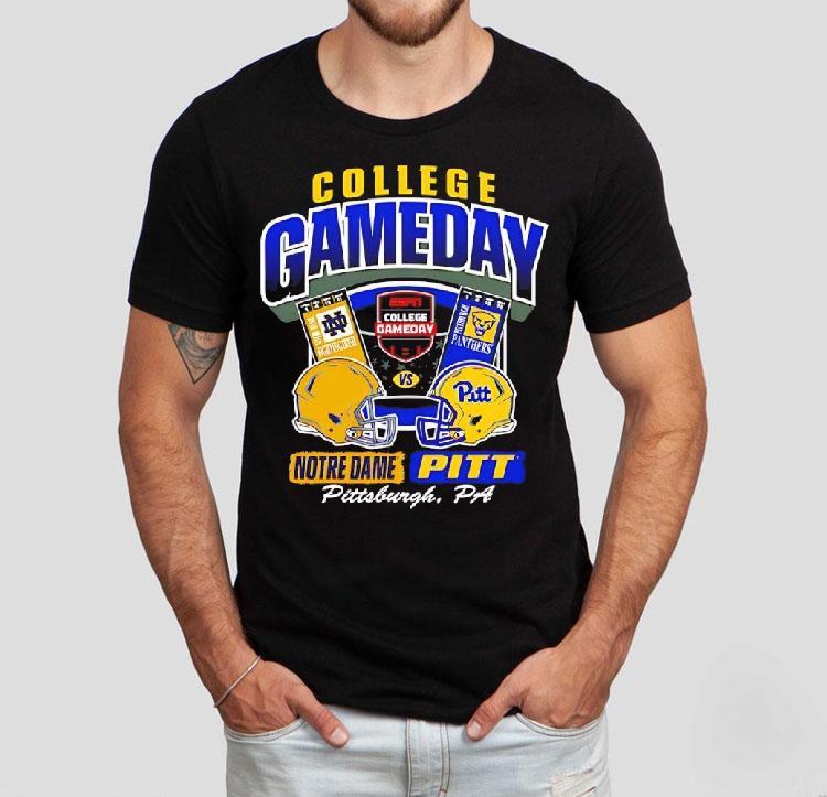 Wardrobe essential, always with College Gameday Notre Dame Vs. Pitt Ticket Shirt, the College GameDay hype is building as Notre Dame takes on Pitt in a highly anticipated matchup. But as fans prepare to cheer on their teams, they also can’t forget to snag the coveted ticket and shirt combo. With both teams at the top of their game, this is one game you won’t want to miss.