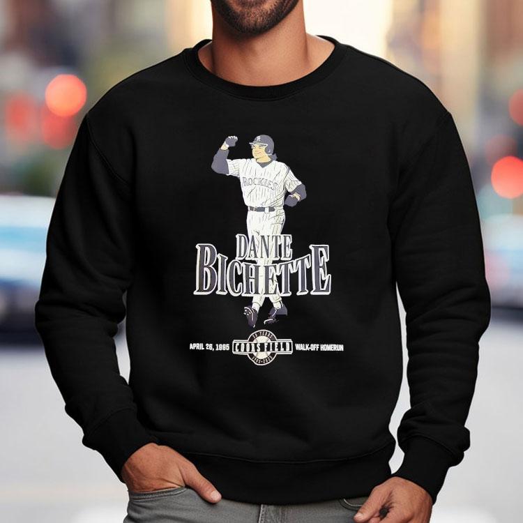 Wardrobe must-have with Dante Bichette Colorado Rockies 30 Years 1995 2025 Coors Field Walk Off Homerun Shirt, dante Bichette, a name synonymous with the Colorado Rockies, left an unforgettable mark on the team’s history. As we celebrate 30 years since the Rockies’ debut in 1995, fans can relive Bichette’s iconic walk-off home run at Coors Field with the commemorative shirt. A must-have for any die-hard Rockies fan.