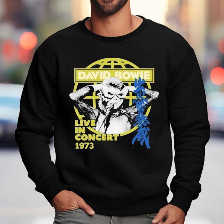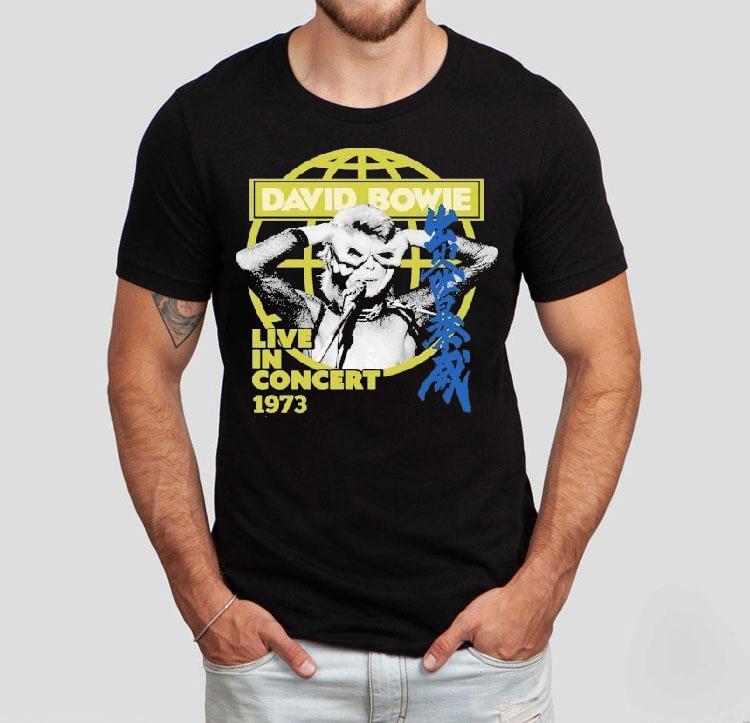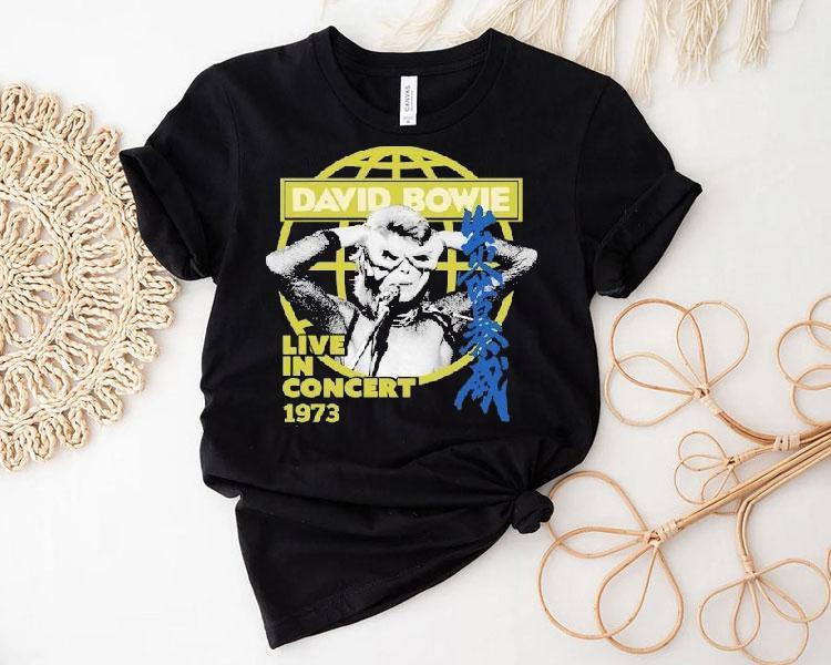 Soft, breathable, and stylish with David Bowie Live In Concert 1973 Globe Shirt, step back in time to the year 1973 and imagine yourself in a packed concert hall, surrounded by the sound of cheering fans and the electrifying energy of legendary musician David Bowie. As you look around, you can’t help but notice the iconic Globe Shirt that has become synonymous with his unforgettable live performances.
