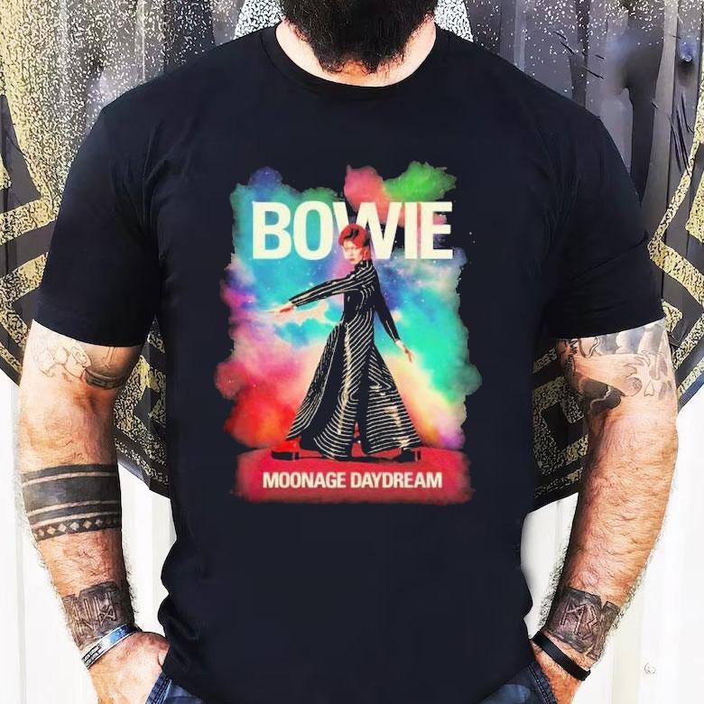 Express yourself with ease with David Bowie Moonage Daydream Shirt, the iconic image of David Bowie in his Moonage Daydream shirt has become synonymous with his glam rock era and continues to be celebrated by fans today. From its psychedelic design to its bold statement, this shirt represents more than just fashion, but a symbol of the legendary performer himself.