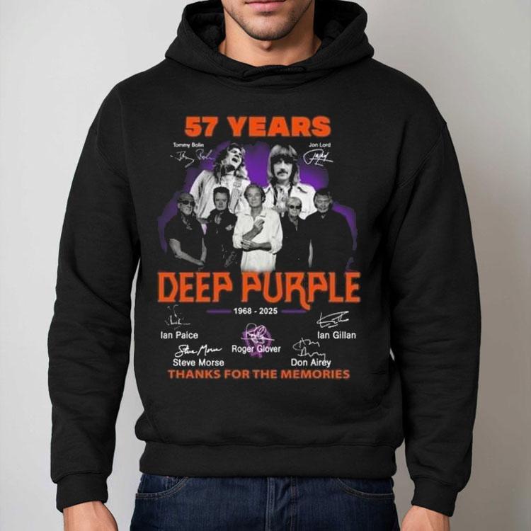 Everyday comfort redefined with Deep Purple 57 Years 1968-2025 Signatures Thanks For The Memories Shirt, as we celebrate the iconic band Deep Purple’s 57 years of rock and roll, we can’t help but reflect on the impact they have had on music over the decades. From their formation in 1968 to their current tour in 2025, their signature sound and unforgettable performances have left a lasting impression on fans worldwide. And what better way to commemorate the journey than with this limited edition “Deep Purple 57 Years 1968-2025 Signatures Thanks For The Memories” shirt.