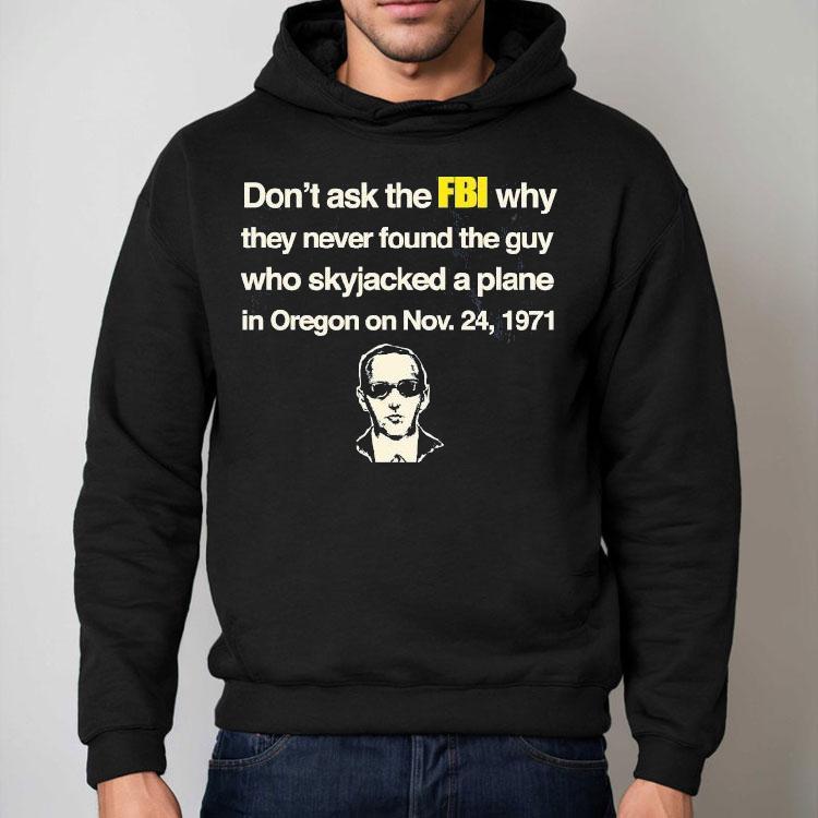 Everyday ease, endless style with Don’t Ask The Fbi Why They Never Found The Guy Who Skyjacked A Plane In Oregon On Nov 24 1971 Shirt, the mystery of the unsolved skyjacking of a plane in Oregon on Nov 24, 1971 still baffles the FBI to this day. Despite their best efforts, the infamous culprit has never been caught and the case remains open. So, don’t bother asking the FBI why they never found the guy who skyjacked the plane, just focus on the iconic shirt that has become a symbol of this unsolved crime.