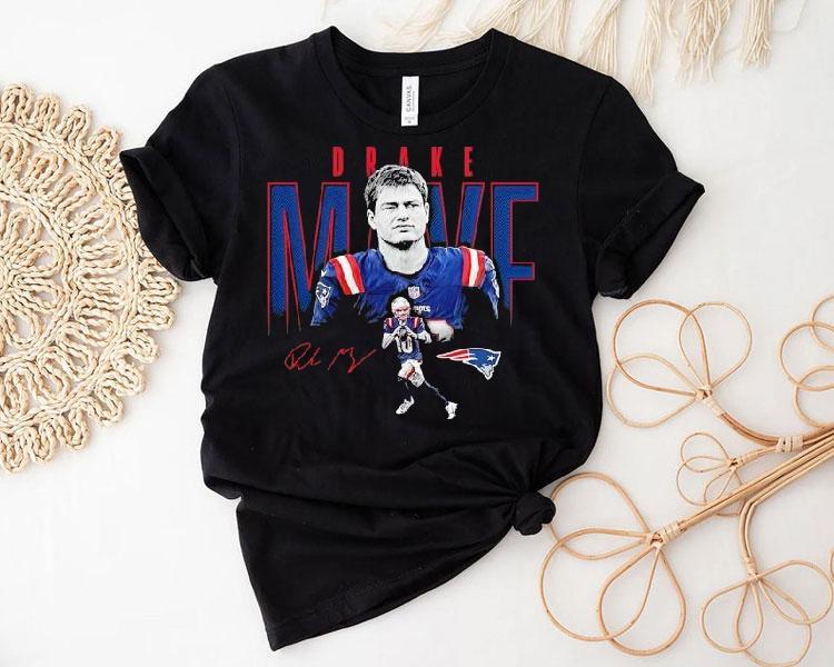 Casual chic, timeless appeal with Drake Maye New England Patriots Football Signature Shirt, introducing the latest addition to the New England Patriots merchandise collection: the Drake Maye signature football shirt. This unique shirt features a bold design with the talented rookie’s name and number prominently displayed. Show your support for the team and their new star player with this must-have shirt.