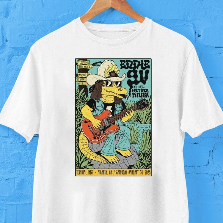 Relaxed elegance, anytime with Eddie 9v Atlanta, Ga January 31 2026 Concert Gator Guitar Shirt, “Get ready to rock with Eddie 9v in Atlanta, Ga on January 31, 2026! This rising blues guitarist is taking the music scene by storm and his upcoming concert is not one to miss. Fans are already buzzing about his electrifying performances and you can show your support with a limited edition Concert Gator Guitar shirt.”