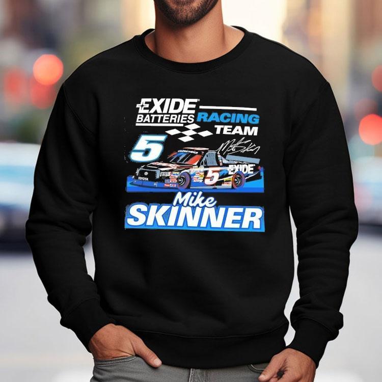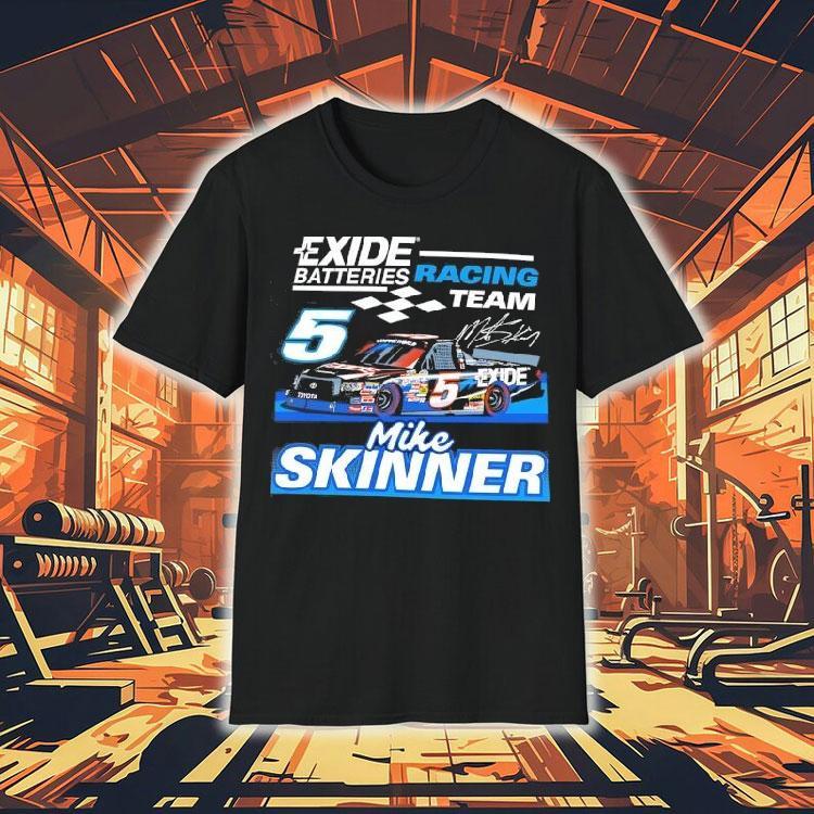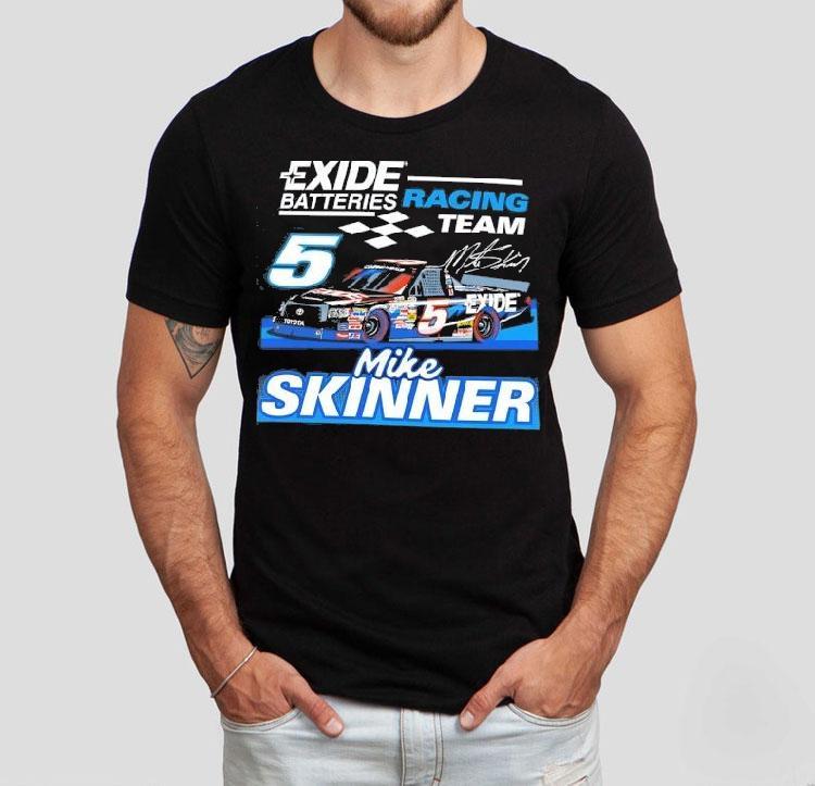 Style made simple with Exide Batteries Racing Team Mike Skninner Signature Shirt, get ready to rev up your style with the Exide Batteries Racing Team Mike Skinner Signature Shirt. This limited edition shirt boasts the iconic logo of the racing team and features a signature from the legendary driver himself. Show off your love for racing and support for a top-notch team with this must-have shirt.