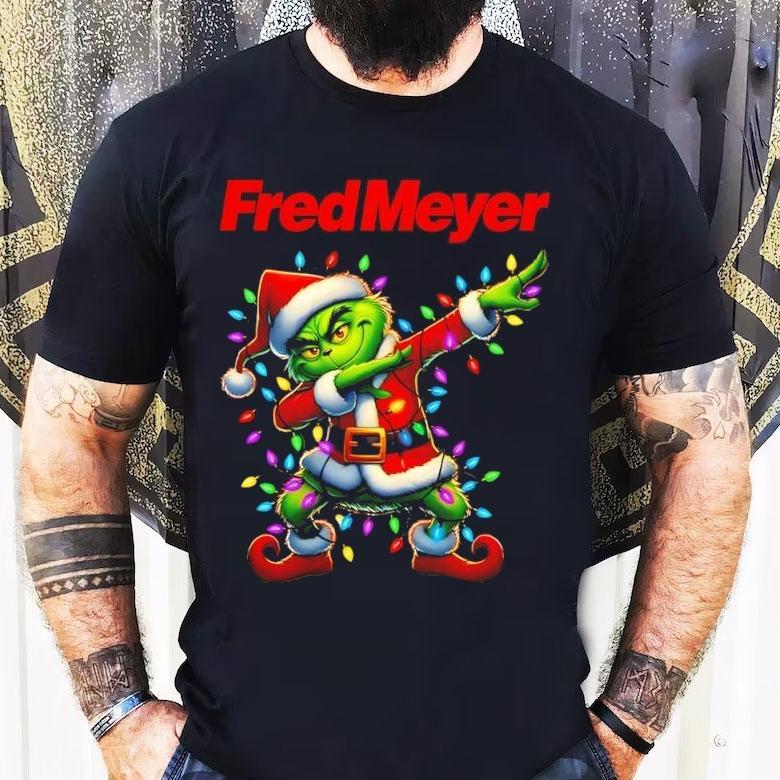 Effortlessly cool with Fred Meyer X Grinch Lights Dabbing Christmas Shirt, get ready to show off your holiday spirit with the perfect combination of humor and festive cheer. Fred Meyer has teamed up with the legendary Grinch to bring you the ultimate holiday attire – the Grinch Lights Dabbing Christmas Shirt. Add some fun to your wardrobe and spread Christmas joy in style!