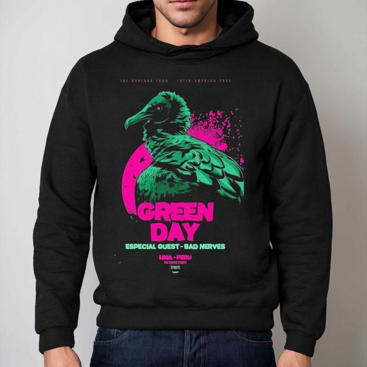 Effortless fashion, endless comfort with Green Day Bad Nerves Lima, Per Aug 27 2025 Show Shirt, the punk rock band Green Day is set to conquer Lima, Peru with their high-energy performance on August 27, 2025. Fans are buzzing with excitement as they prepare for the highly anticipated show, sporting their classic band shirts and braving any nerves in anticipation for a wild night of music.