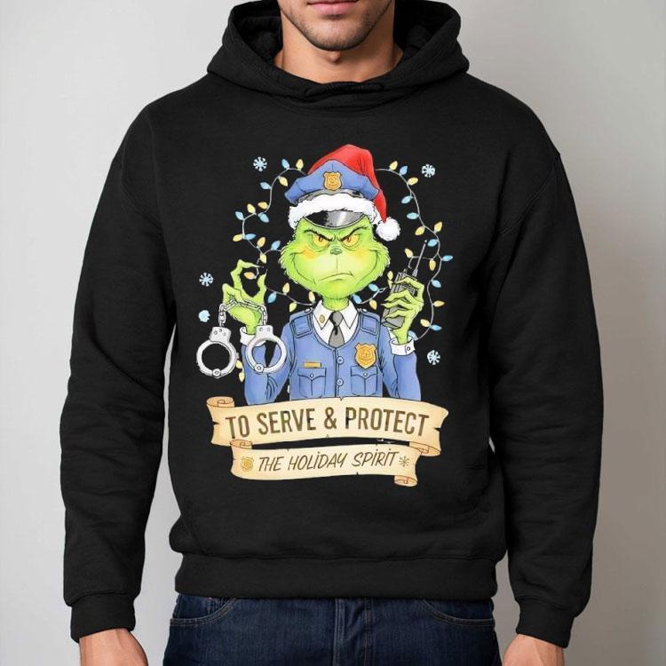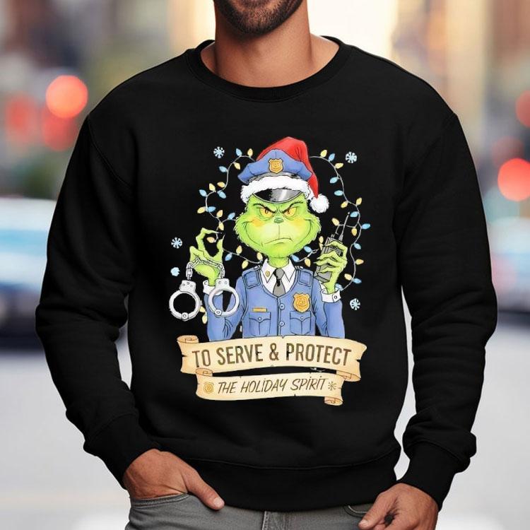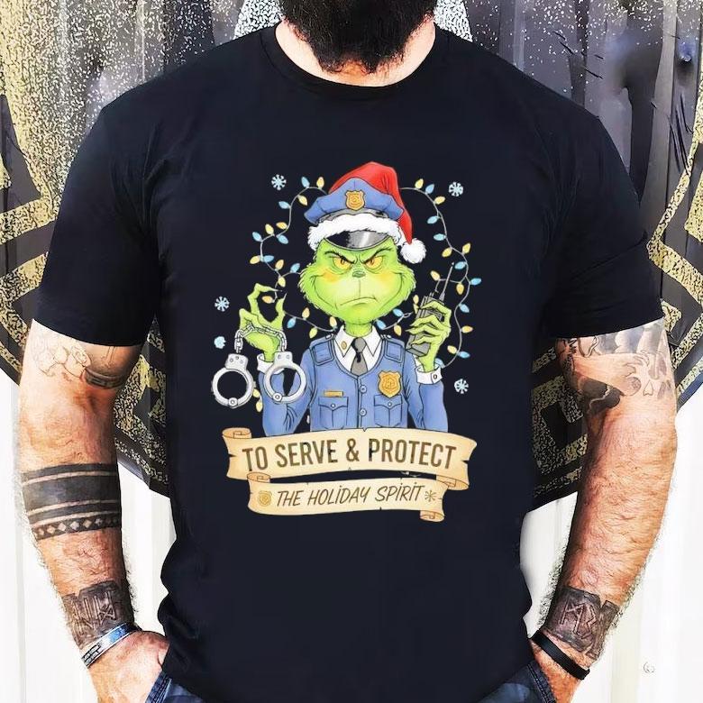 Essential wardrobe staple with Grinch Police To Serve And Protect The Holiday Spirit Christmas Shirt, the Grinch Police is on a mission to serve and protect the holiday spirit with their Christmas shirts. This dedicated team is spreading joy and cheer, ensuring that the holiday season is filled with love and kindness. Decked out in their festive attire, they are ready to make everyone’s hearts grow three sizes!