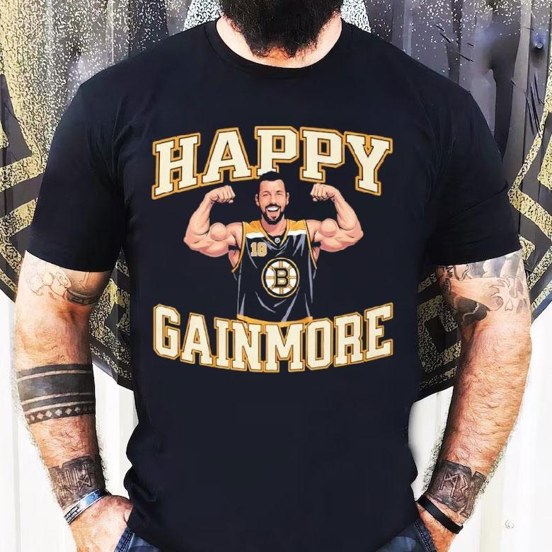 Your style, your signature with Happy Gainmore Boston Bruins Shirt, get ready to wear your pride on your sleeve with the new Happy Gainmore Boston Bruins shirt! Show your support for your favorite team with this stylish and comfortable shirt that will have you cheering on the Bruins all season long. Get yours today and join the happy Gainmore fan club!