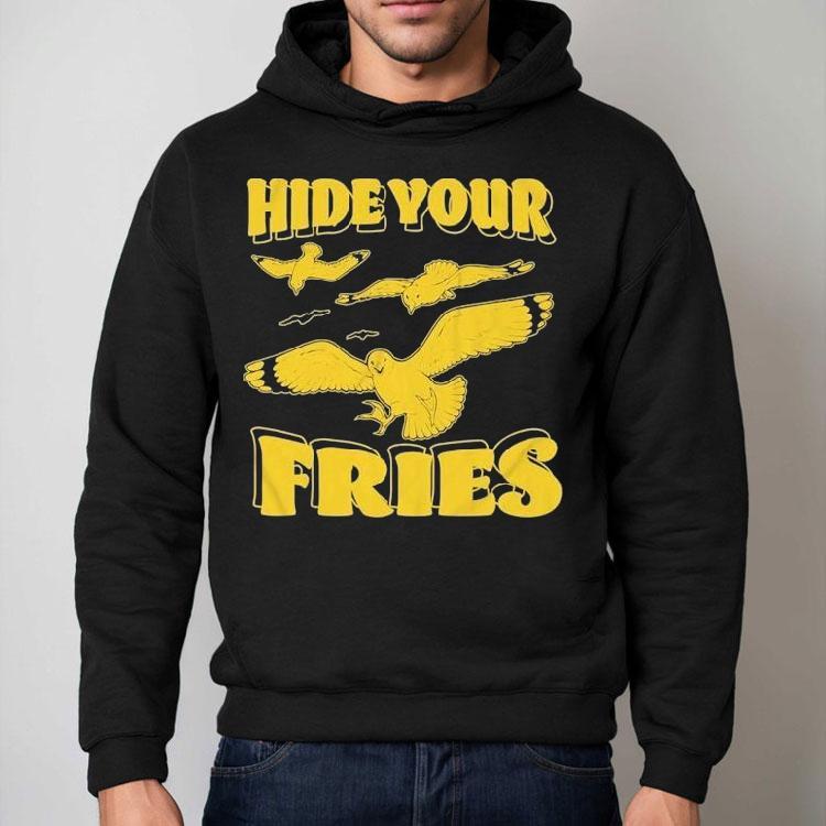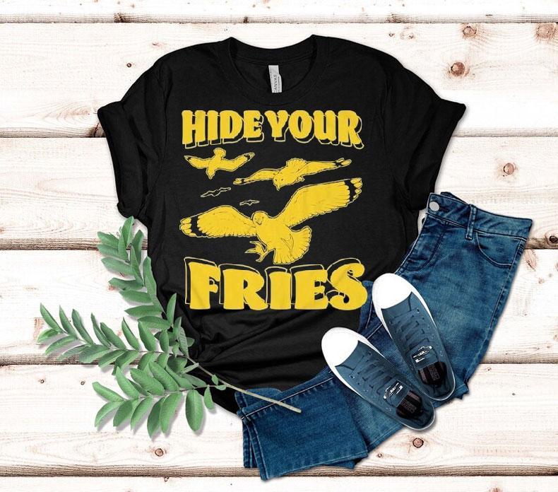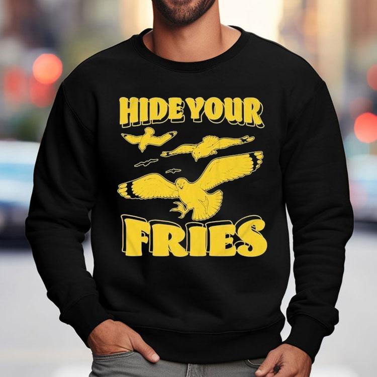 Chic minimalism, everyday wear with Hide Your Fries Dove Shirt, the smell of hot, crispy fries wafts through the air, making your mouth water. But before you can take a bite, you hear a rustle and turn to find your sneaky friend eyeing your fries. With your trusted Dove Shirt, you discreetly hide your beloved fries, keeping them safe from any potential fry thieves.