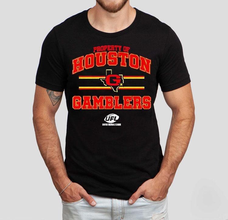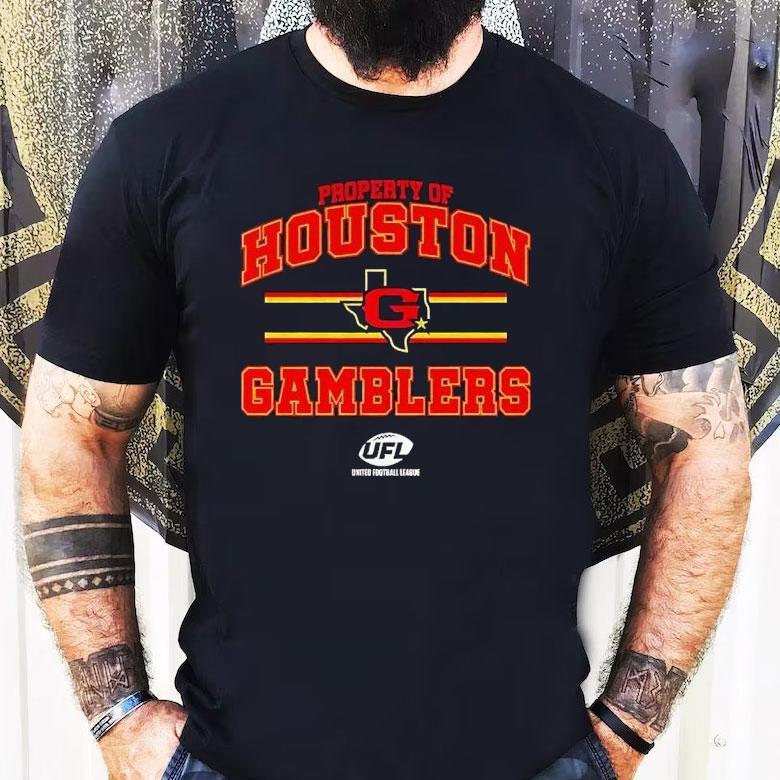 Unmatched comfort, chic look with Houston Gamblers Ufl Property Of Houston Gamblers Shirt, looking to show off your Houston Gamblers pride? Look no further than the official Ufl Property Of Houston Gamblers shirt! This stylish and comfortable shirt is a must-have for any die-hard Gamblers fan. Show your support for your favorite Ufl team and represent the city of Houston with this exclusive shirt.