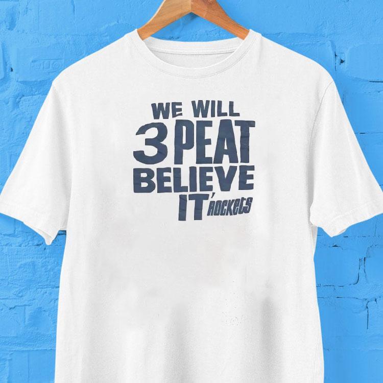 Casual flair, all occasions with Houston Rockets We Will 3-peat Believe It Shirt, get ready, Houston Rockets fans! It’s time to show your team spirit and wear your pride on your sleeves with the all-new “We Will 3-peat Believe It” shirt. As the Rockets gear up for another season of chasing the championship, let’s unite and support our team with this powerful statement.