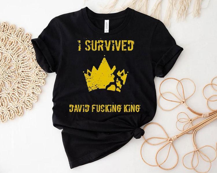 Soft, breathable, and stylish with I Survived David Fcking King Shirt, as my body shook with terror, I braced myself against the wall, holding on for dear life. All around me, chaos ensued as others fought to escape the wrath of David Fcking King. But I, I survived. And all I have to show for it is this damn shirt, a reminder of the terror I endured.