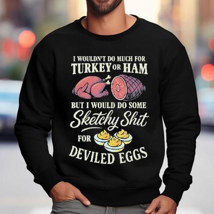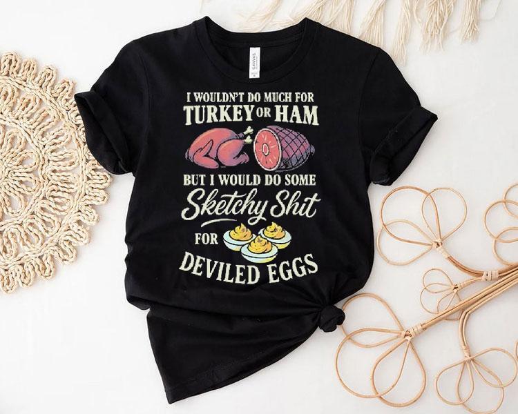 Wardrobe staple, endless style with I Wouldn’t Do Much For Turkey Or Ham But I Would Do Some Sketchy Shit For Deviled Eggs Shirt, as someone who isn’t a fan of traditional holiday dishes like turkey or ham, I never thought I would find myself doing anything out of the ordinary for a food item. But when I saw the “Deviled Eggs” shirt, I couldn’t help but feel a strange pull towards it, willing to possibly indulge in some sketchy antics to get my hands on it.