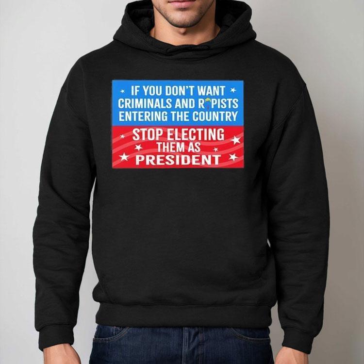 The perfect blank canvas with If You Don’t Want Criminals Rapists Entering Country Stop Electing Them As President Shirt, are you tired of seeing criminals and rapists enter your country? It’s time to take a stand and stop electing them as your president. With the powerful message on this “If You Don’t Want Criminals Rapists Entering Country Stop Electing Them As President” shirt, show your support for a safer and better future.