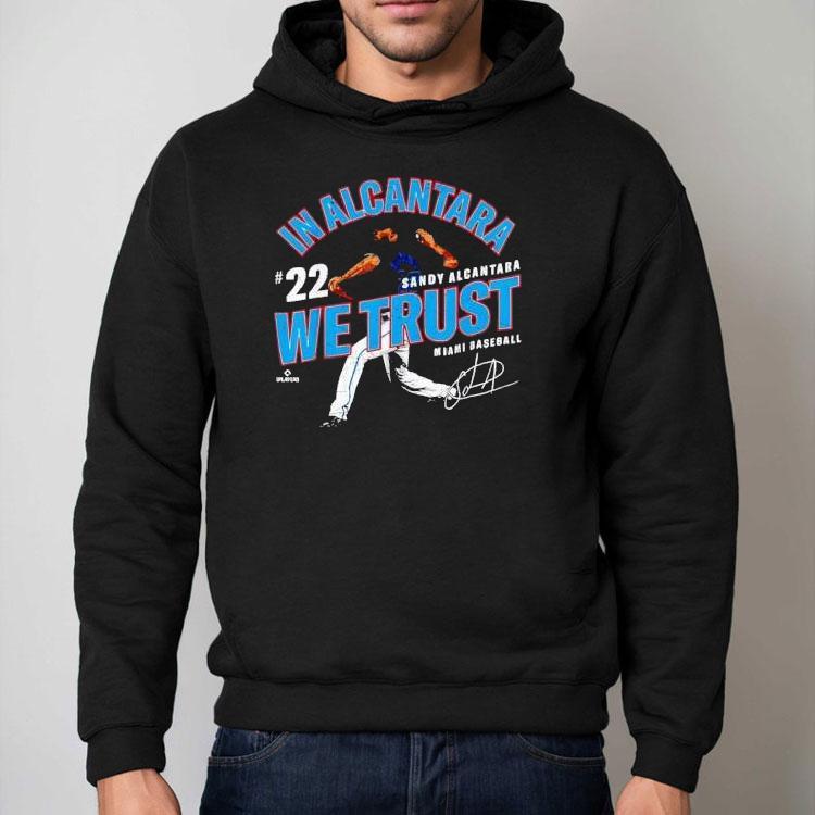 Chic minimalism, everyday wear with In Alcantara We Trust Sandy Alcantara Miami Baseball Mlbpa Shirt, as the Miami Marlins take the field, fans proudly don their Sandy Alcantara MLBPA shirts, a testament to their trust in the young pitcher. Alcantara has captured the hearts of fans with his impressive performances on the mound, earning him a spot as one of the team’s most reliable players. In Alcantara we trust.