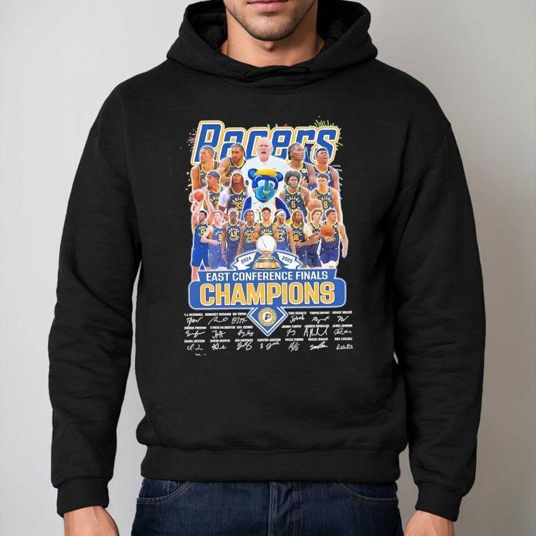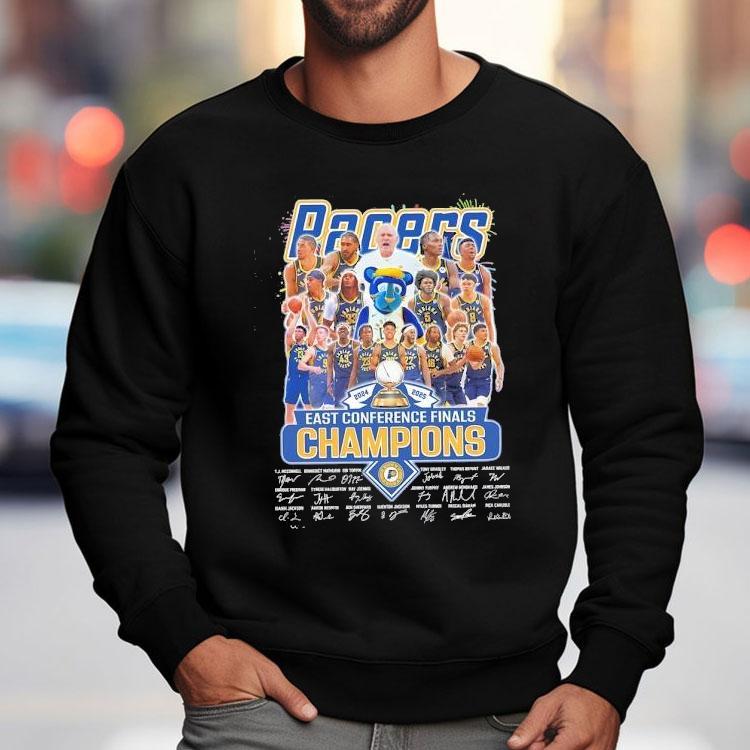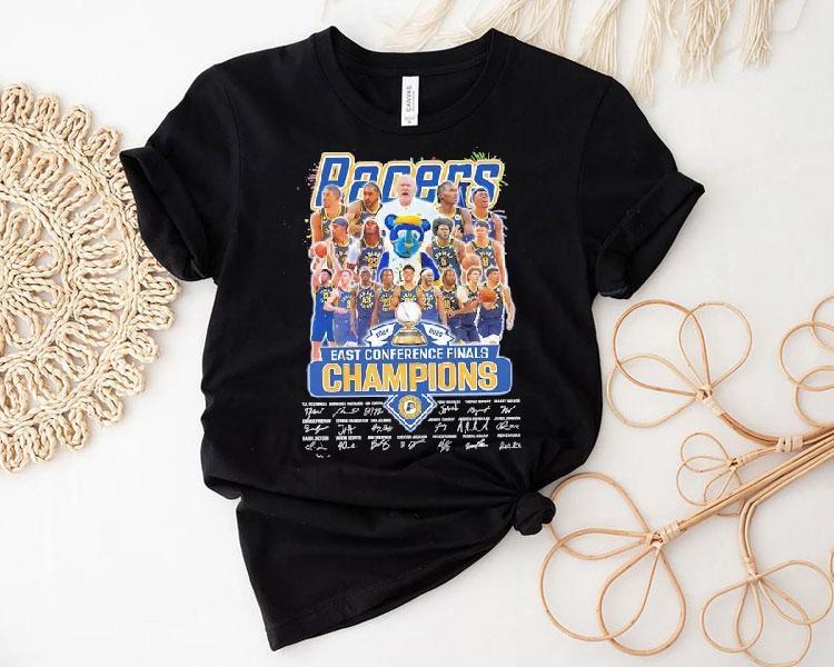 Your fashion canvas with Indiana Pacers Eastern Conference Finals Champions Signatures Shirt, get ready to show off your team pride with the official Indiana Pacers Eastern Conference Finals Champions Signatures Shirt. This limited edition shirt features the signatures of your favorite Pacers players and commemorates their triumph in the playoffs. Don’t miss your chance to own a piece of history and support the team all year round.