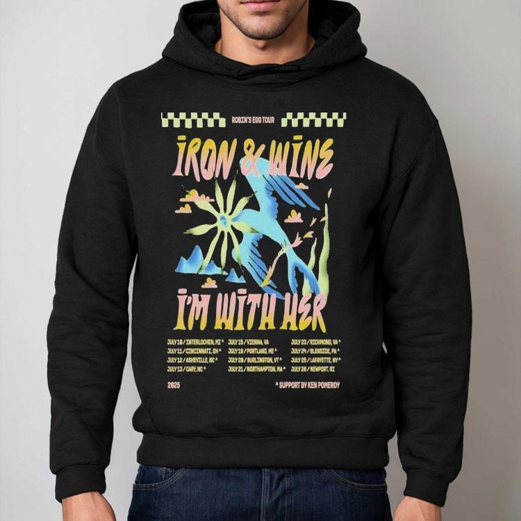 Casual sophistication, always in style with Iron Wine I’m With Her In Cincinnati, Oh July 11, 2025 Tour Dates Shirt, the city of Cincinnati, Ohio will be filled with the soulful sounds of Iron Wine and I’m With Her on July 11, 2025. Fans eagerly await the long-awaited tour dates and proudly don their commemorative shirts as they make their way to the concert venue. With anticipation in the air, this promises to be a night to remember.
