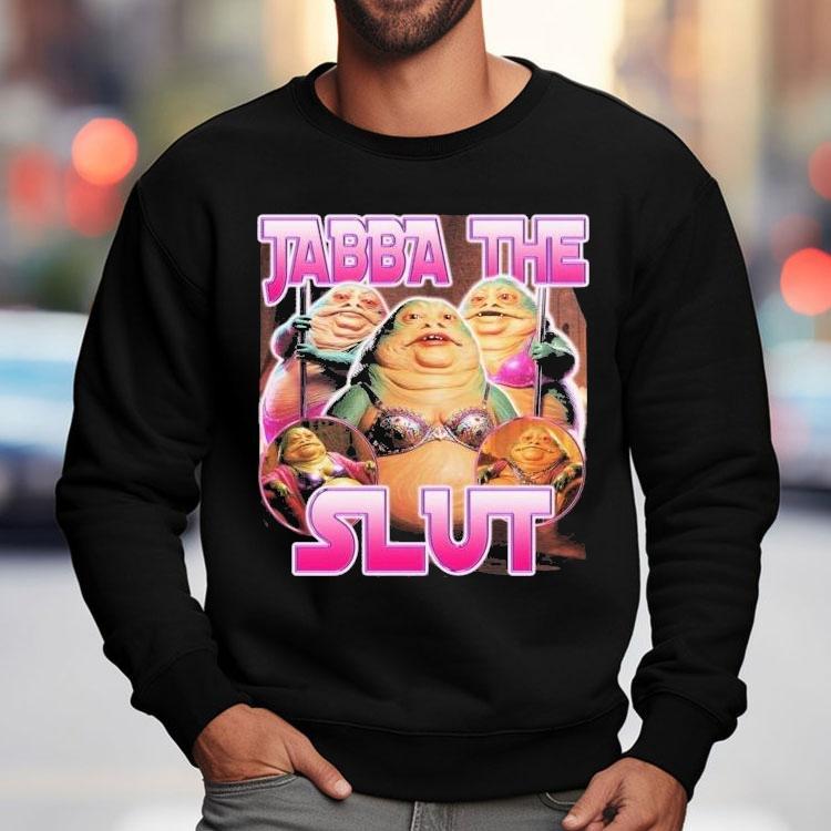 Casual cool, anytime chic with Jabba The Slut Star Wars Shirt, in a galaxy far, far away, a notorious gangster ruled over the criminal underworld with an iron fist and a love for all things scandalous. His name was Jabba the Hutt, and his latest fashion statement was causing quite a stir among the outer rim planets: the Jabba the Slut Star Wars shirt.