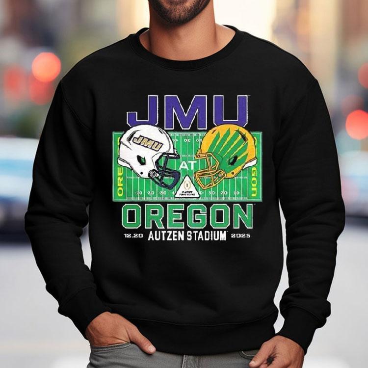James Madison Dukes Vs Oregon Ducks Ncaa Cfp 2025 Autzen Field Helmet Shirt