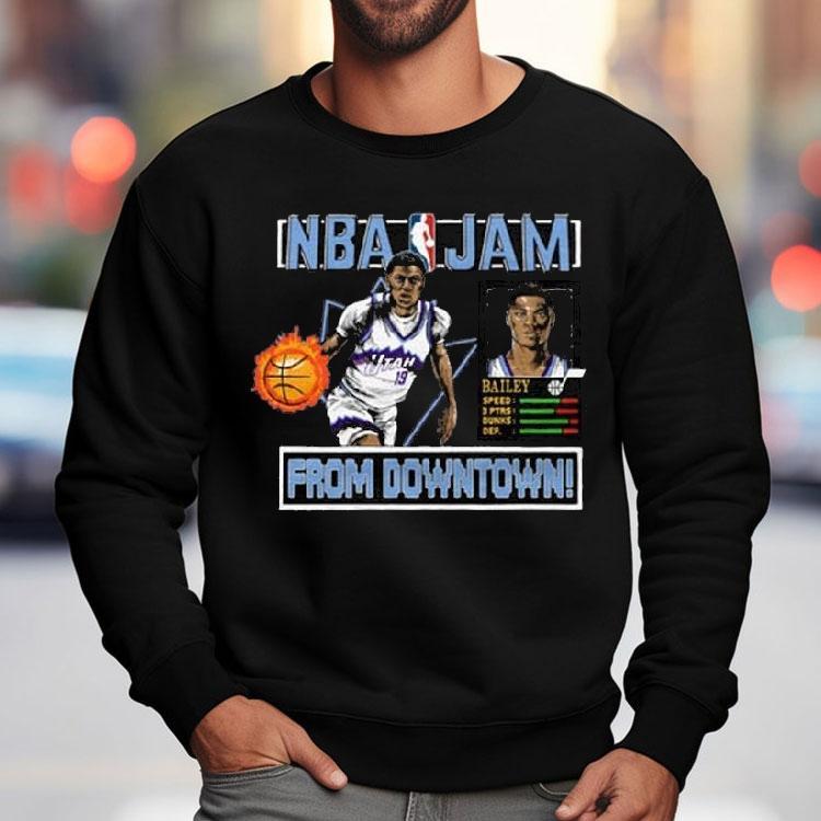 Everyday luxury, casual charm with Jazz Ace Bailey Nba Jam From Downtown Shirt, are you ready to show off your love for music and basketball? Look no further than the Jazz Ace Bailey NBA Jam From Downtown shirt! This trendy and unique shirt combines the iconic video game with the legendary jazz musician to create the ultimate statement piece. Get ready to represent your passions in style!