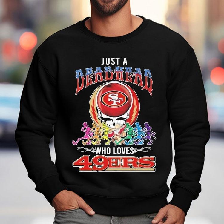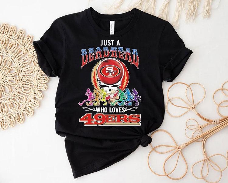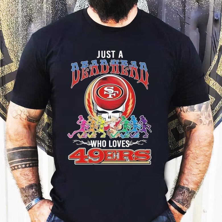 Casual flair, all occasions with Just A Deadhead Who Loves San Francisco 49ers X Grateful Dead Skeletons Dance Shirt, i’ve always been a die-hard fan of the San Francisco 49ers, but what many people don’t know is that I also have a strong passion for the iconic band, Grateful Dead. So when I found a shirt that combines my love for both, featuring a dancing skeleton adorned in the 49ers colors, I knew it was a must-have for this deadhead.