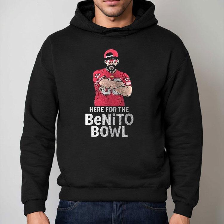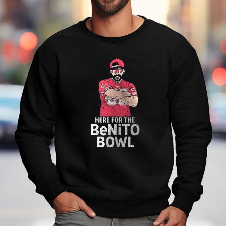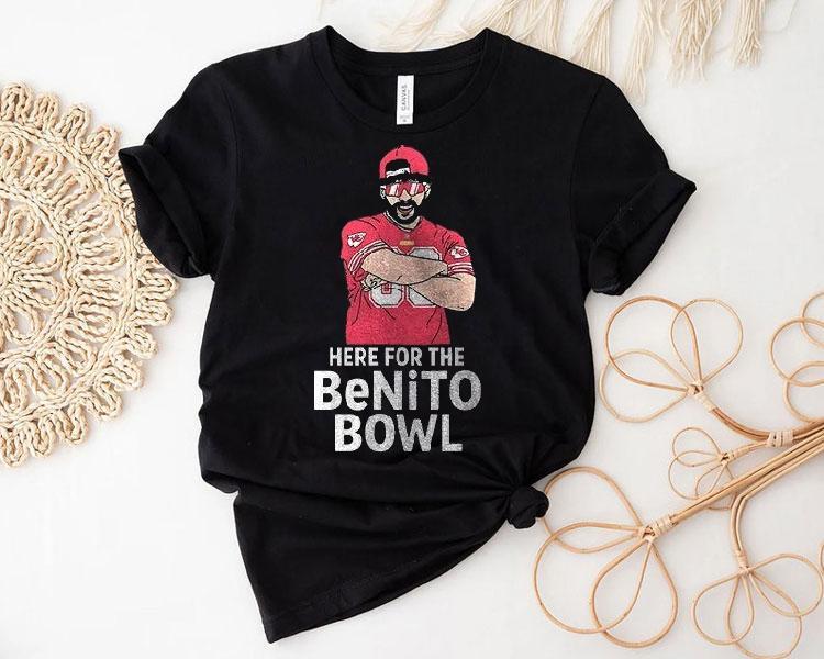 Chic comfort, all day with Kansas City Chiefs X Super Bowl Halftime Here For The Benito Bowl Art Shirt, gear up for the ultimate football showdown as the Kansas City Chiefs take on the biggest game of the year – the Super Bowl Halftime. And what better way to show your support for the team than with the limited edition Benito Bowl Art Shirt. Get yours now and wear it proudly!