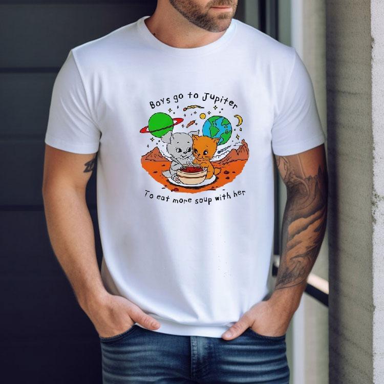 Soft, breathable, and stylish with Kitten Boys Go To Jupiter To Eat More Soup With Her Shirt, kitten boys may seem like ordinary felines, but these mischievous little ones have a secret. They can travel through space, and their next destination is Jupiter. But it’s not just for the breathtaking views, they have a craving for soup and they’ll do whatever it takes to get it, even if it means borrowing their human’s shirt as a disguise.