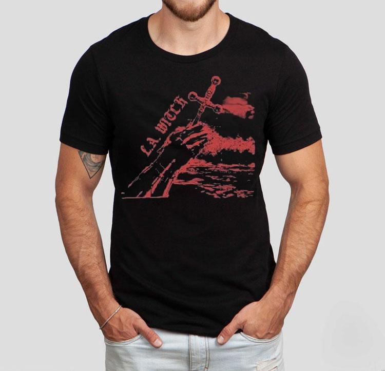 Simple style, bold impact with L.a. Witch Dagger Hand Shirt, looking to elevate your edgy style? Then the L.A. Witch Dagger Hand Shirt is the perfect addition to your wardrobe. This unique and eye-catching shirt features a bold design with a mysterious witch holding a dagger in hand. Let your inner witch come out to play with this must-have statement piece.