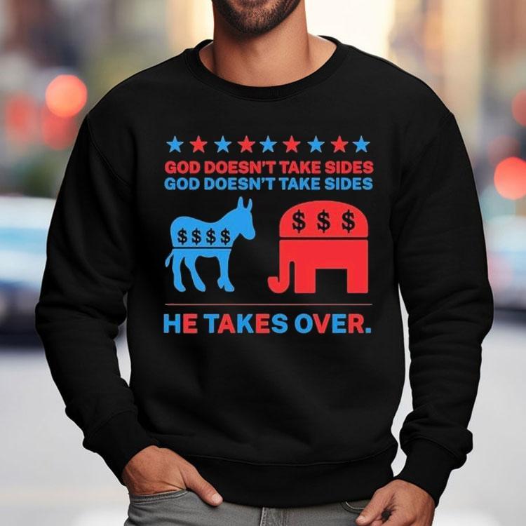 Effortlessly cool with Lecrae God Doesn’t Take Sides God Doesn’t Take Sides He Takes Over Donkey And Elephant Shirt, in a world that often feels divided, it’s important to remember that God doesn’t take sides. As Christian hip hop artist Lecrae reminds us, His love and power transcends political affiliations and earthly conflicts. So let’s put aside our Donkey and Elephant shirts and instead focus on surrendering to God’s divine guidance and sovereignty.