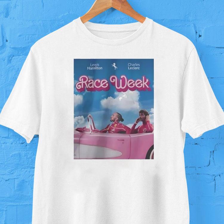 Classic tee, modern twist with Lewis Hamilton X Charles Leclerc Race Week Style Barbie Shirt, as the race week approaches, all eyes are on the two F1 champions, Lewis Hamilton and Charles Leclerc. But besides their on-track skills, the two have been making waves with their off-track fashion statements. This week, they were spotted sporting matching Barbie shirts, adding a playful touch to their race week style.
