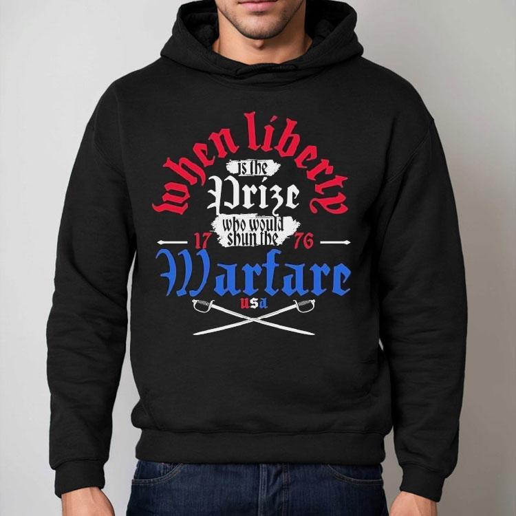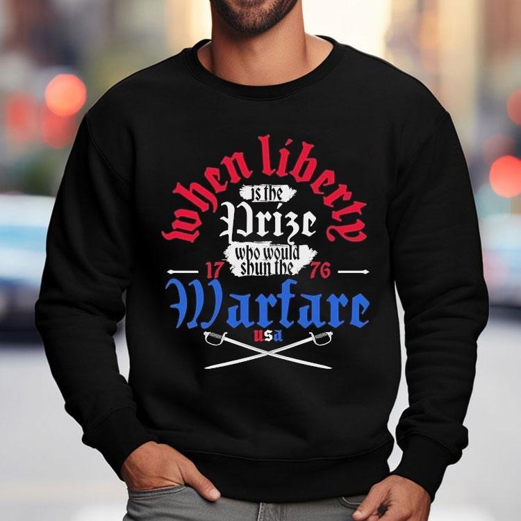 Wearable comfort, endless style with Liberty Is The Prize Who Would Shun The Warfare Usa 1776 Shirt, in the midst of the American Revolution in 1776, one simple phrase echoed through the streets: “Liberty is the prize.” It was a rallying cry for those who sought independence from British rule and were willing to fight for it. Today, that same sentiment is proudly worn on a shirt that symbolizes the bravery and sacrifice of those who fought for the birth of a nation: the “Warfare USA 1776” shirt. Let’s explore the significance of this iconic garment and the enduring spirit of liberty it represents.
