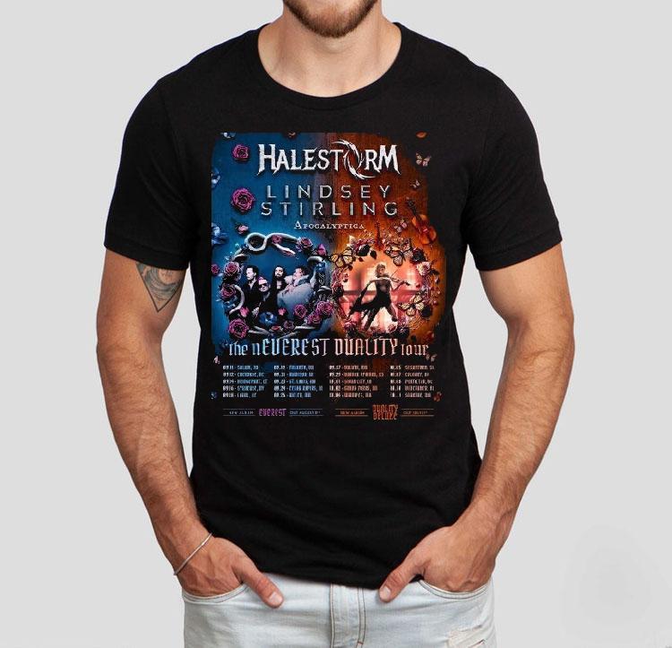 Chic minimalism, always with Lindsey Stirling And Halestorm The Neverest Duality Tour 2025 Shirt, “Get ready to rock out with the ultimate fusion of classical and hard rock as two powerhouse performers, Lindsey Stirling and Halestorm, join forces for the highly anticipated Neverest Duality Tour 2025. And what better way to commemorate this epic collaboration than with a one-of-a-kind tour shirt that is sure to become a collector’s item?”