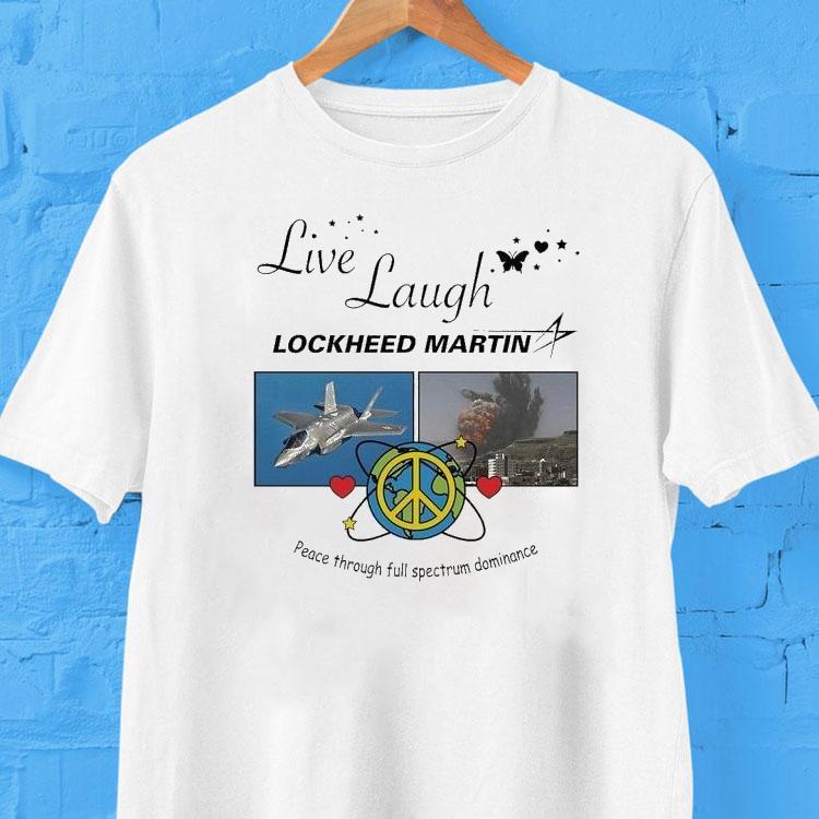 Fashion meets comfort with Live Laugh Lockheed Martin Peace Through Full Spectrum Dominance Shirt, “Channel your inner peace while spreading laughter with the new Live Laugh Lockheed Martin Peace Through Full Spectrum Dominance Shirt. This unique and stylish shirt, designed by the renowned company, is a perfect representation of their philosophy on achieving global peace through advanced technological dominance. Reclaim your sense of humor and make a statement for a better world.”