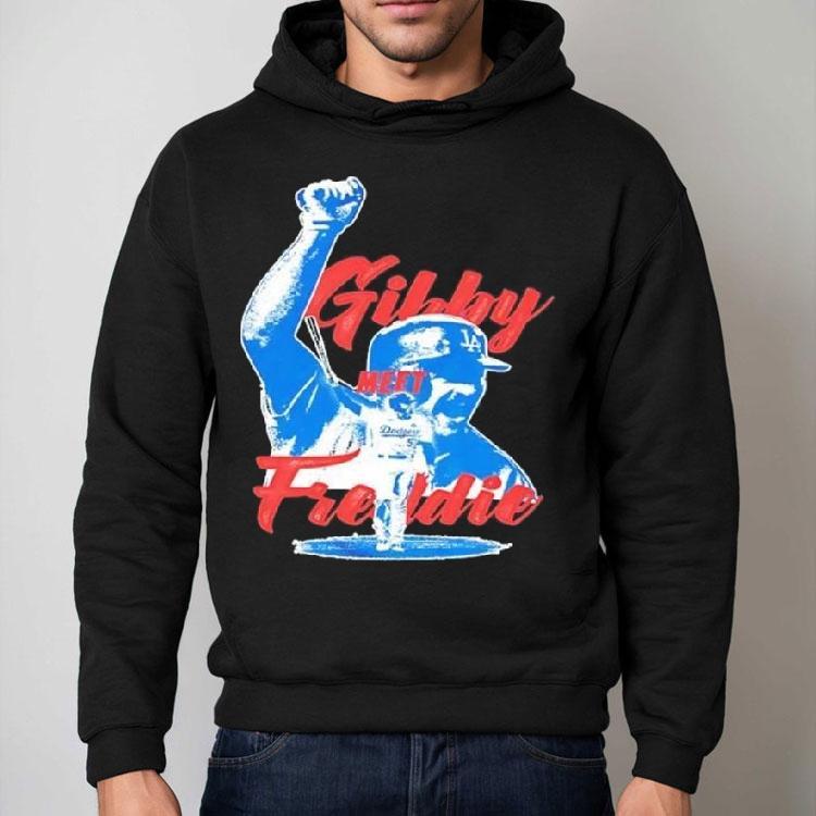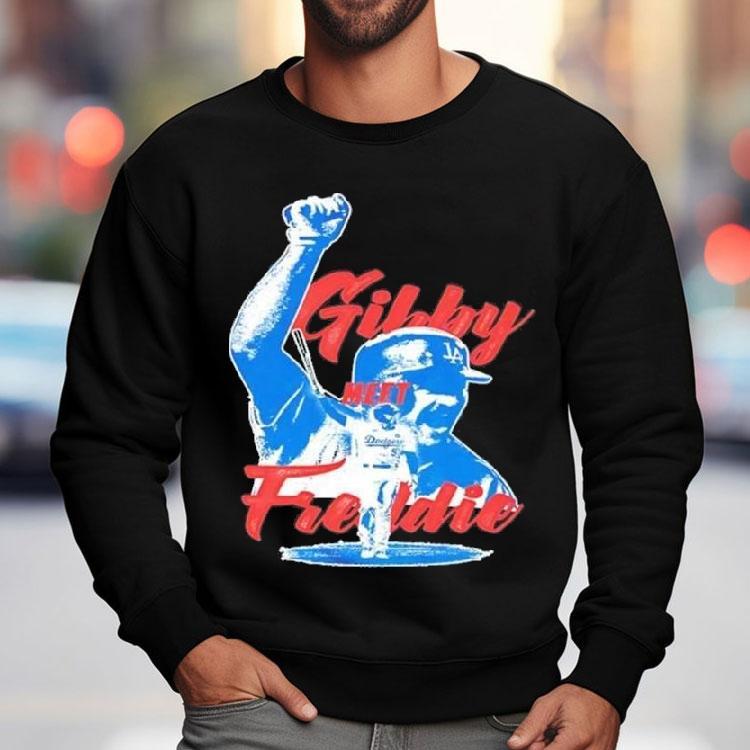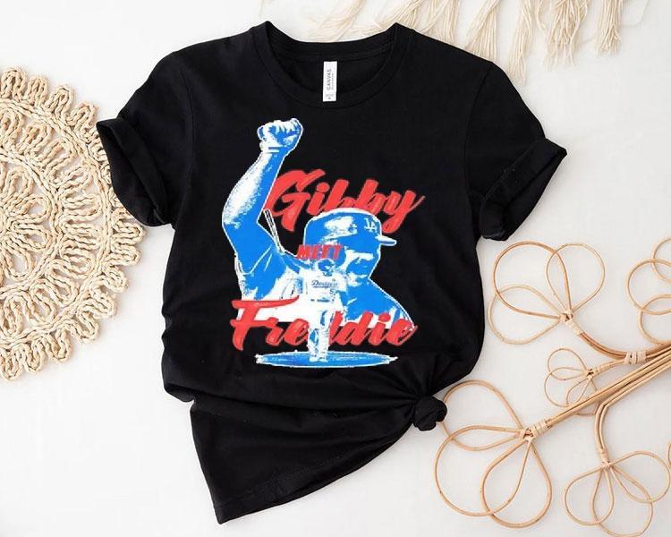 Classic look, contemporary feel with Los Angeles Dodgers Gibby Meet Freddie Freeman Shirt, the Los Angeles Dodgers Gibby Meet Freddie Freeman Shirt has become the latest must-have item for Dodgers fans and baseball enthusiasts alike. This exclusive shirt features a design commemorating the highly anticipated meeting between Dodgers pitcher, Rich “Gibby” Hill, and Atlanta Braves first baseman, Freddie Freeman. Show your support for these two talented players and their teams with this stylish and unique shirt.
