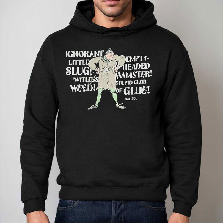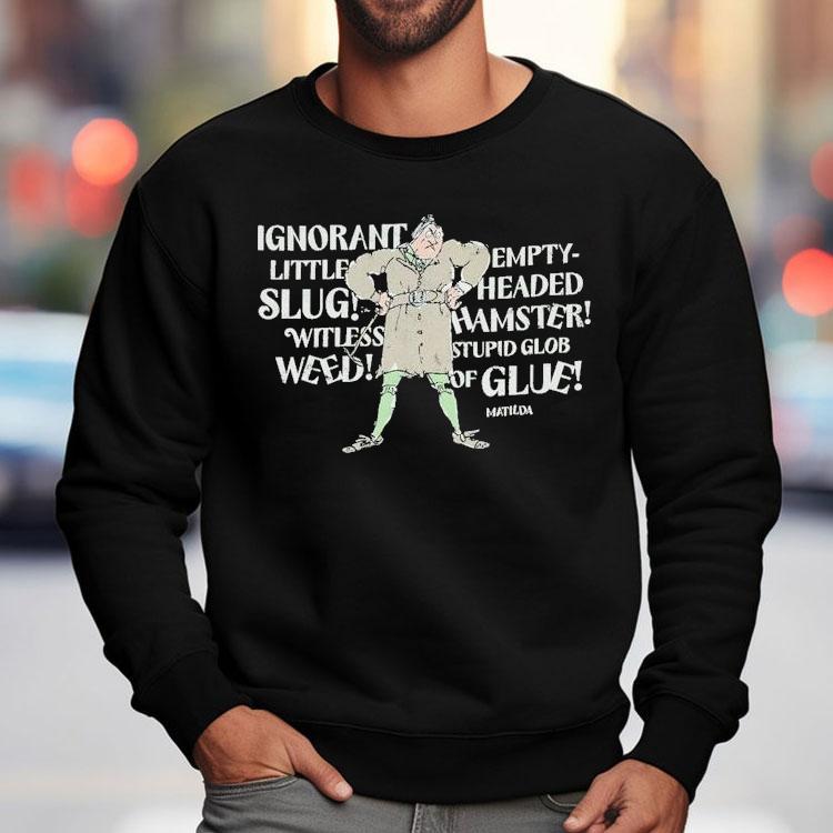 Effortless fashion, endless comfort with Matilda Trunchbull Ignorant Little Empty Slug Headed Witless Hamster Witless Stupid Glob Weed Of Glue Shirt, matilda Trunchbull, the notorious headmistress of Crunchem Hall, was known for her strict rules and tyrannical ways. She ruled her school with an iron fist, often belittling her students with insults like “ignorant little empty slug” and “witless hamster.” But beneath her tough exterior, she was nothing more than a witless, stupid glob weed of a person, stuck in her stiff, glue-stained shirt.