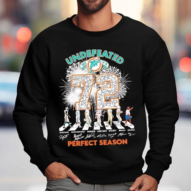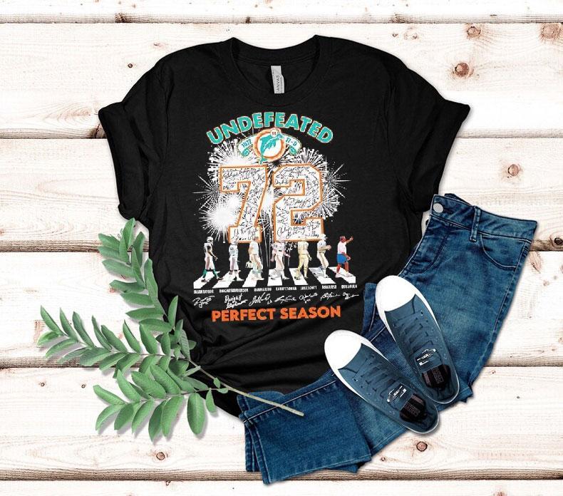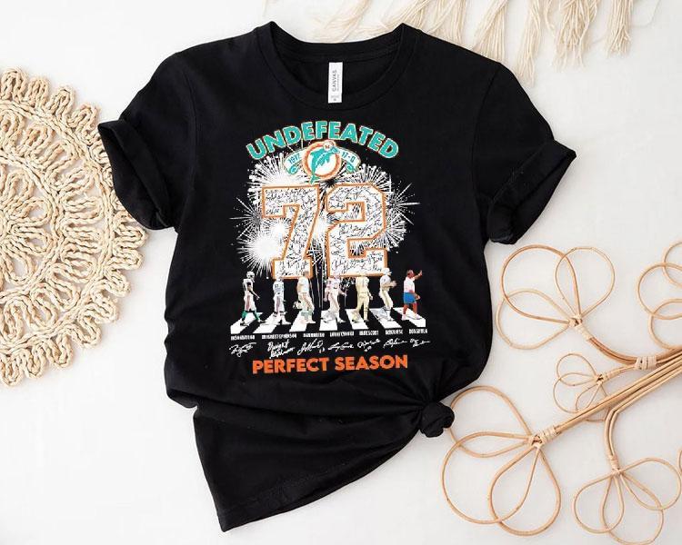 Versatile fashion, always with Miami Dolphins Undefeated 1972 72 Perfect Season Abbey Road Signatures Shirt, the Miami Dolphins are celebrating their undefeated 1972 season with a limited edition Abbey Road Signatures shirt. This iconic shirt features the signatures of the legendary players who made the perfect season possible. Fans can now proudly wear this piece of history and show their support for the team’s remarkable achievement.