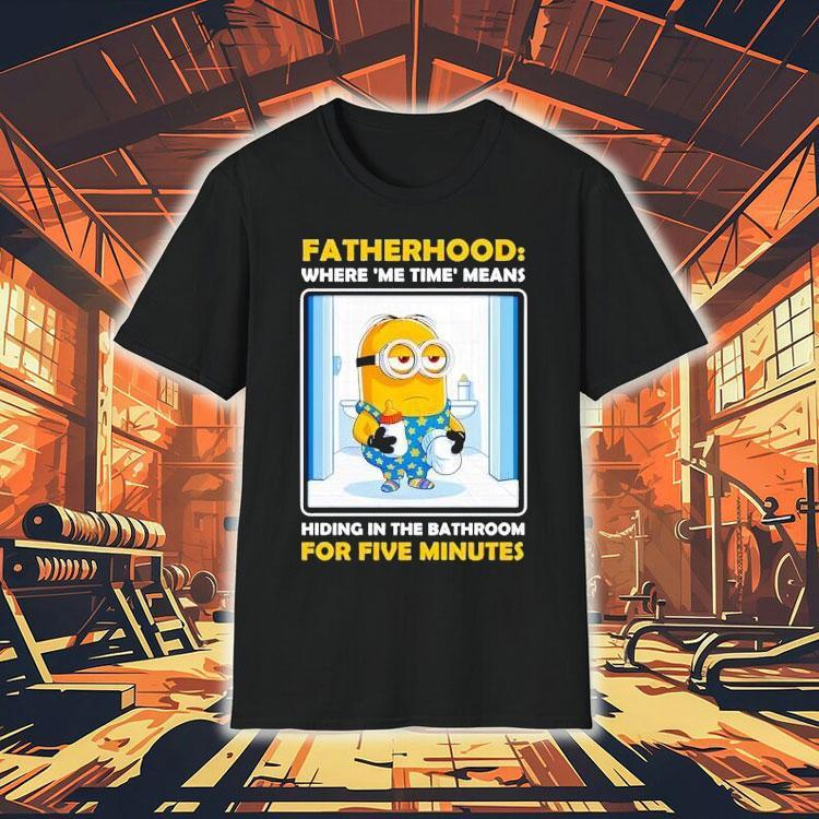 Classic tee, modern twist with Minion Fatherhood Where Me Time Means Hiding In The Bathroom For Five Minutes Shirt, fatherhood comes with its own set of challenges and joys, especially when your children are as mischievous as minions. As a minion dad, finding time for yourself can be a struggle. But fear not, with this stylish “Me Time Means Hiding In The Bathroom For Five Minutes” shirt, you can embrace those precious moments of solitude.