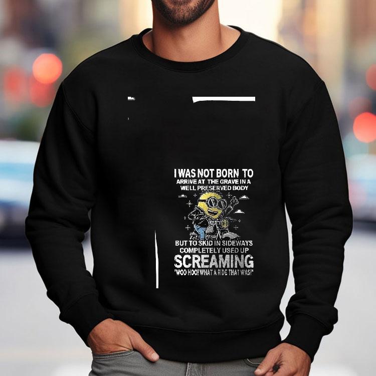 Versatile fashion, always with Minion I Was Not Born To Arrive At The Grave In A Well Preserved Body But To Skid In Sideways Shirt, less And Screaming “Minion, I was not born to simply arrive at the grave in a well preserved body. No, my purpose is to live life to the fullest, to skid in sideways with no regard for convention or societal norms. So I say, let’s shed our shirts and scream as we embrace every wild adventure.”