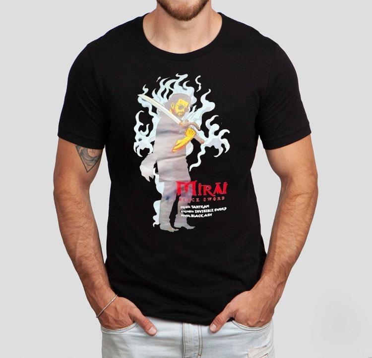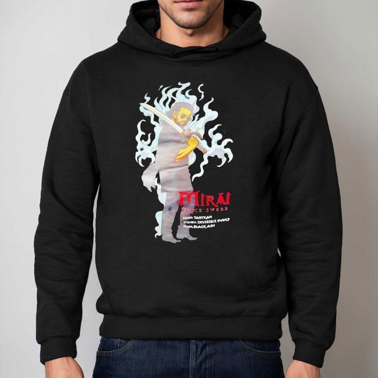 Simple yet versatile fashion with Mirai Black Sword Tantram X Invisible Sword Shirt, the sun was setting over the ancient city of Mirai, casting a golden glow on the streets below. Among the bustling crowd, a figure clad in a black sword tantram X invisible sword shirt emerged, drawing curious glances from passersby. This mysterious warrior wielded a powerful weapon, a testament to their formidable skills.
