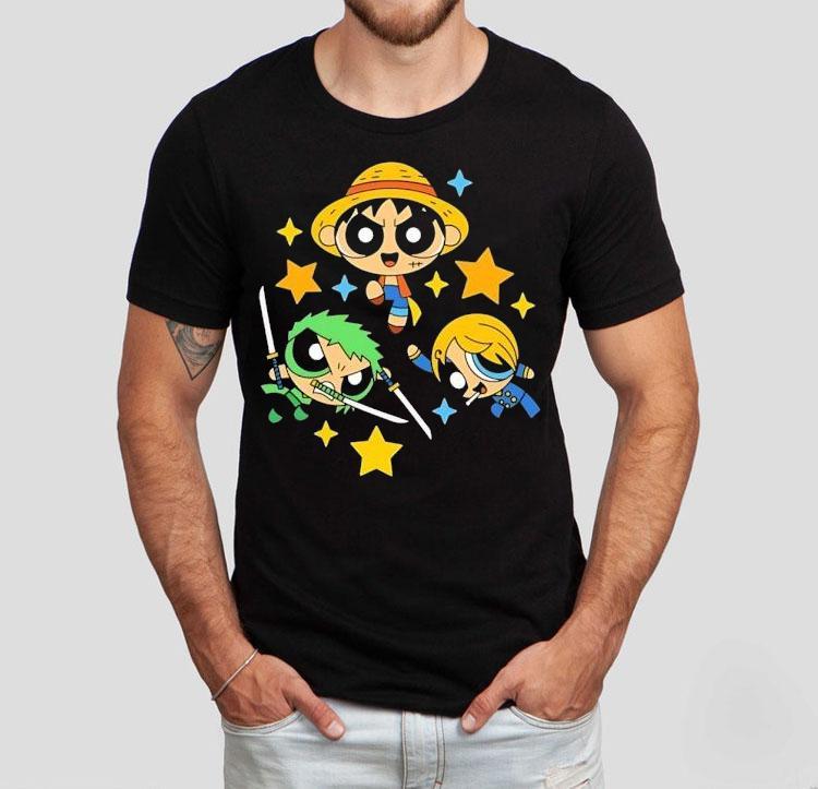 Timeless comfort, modern vibe with Monkey D Luffy Roronoa Zoro And Sanji From One Piece Style Of The Powerpuff Girls Shirt, join Monkey D Luffy, Roronoa Zoro, and Sanji from the popular anime series One Piece as they channel the powerful and playful energy of the beloved Powerpuff Girls. With a bold and colorful shirt featuring their iconic style, these pirates are ready to take on any adventure with a touch of sugary sweetness.