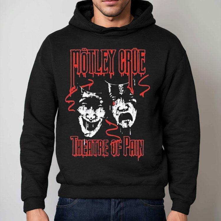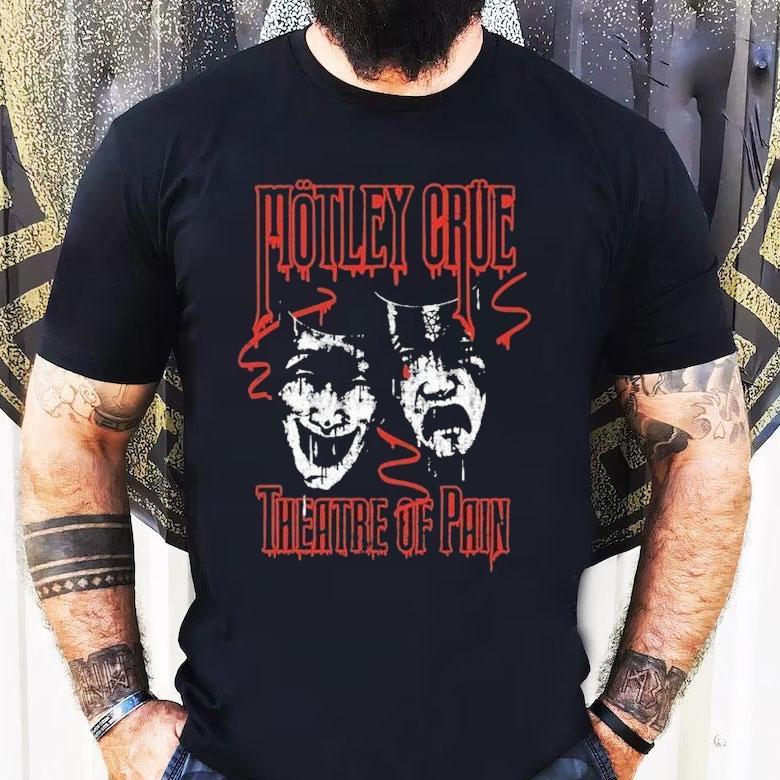 Wear it well, wear it often with Motley Crue Theatre Of Pain Rustic Drip Shirt, get ready to rock out in style with the ultimate vintage look. The iconic band, Motley Crue, has inspired a rustic drip shirt to celebrate their classic album, Theatre of Pain. This limited edition shirt is perfect for any fan looking to add some edge to their wardrobe.