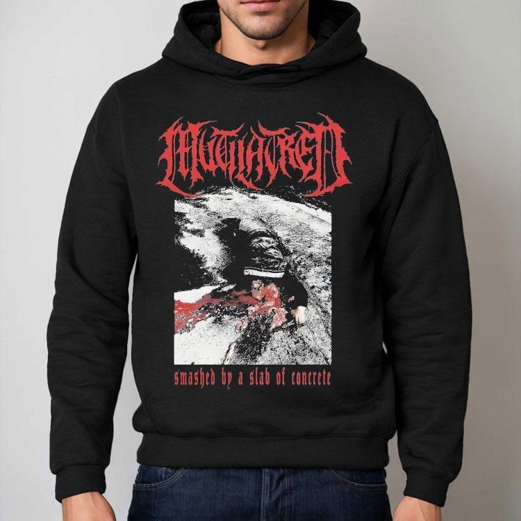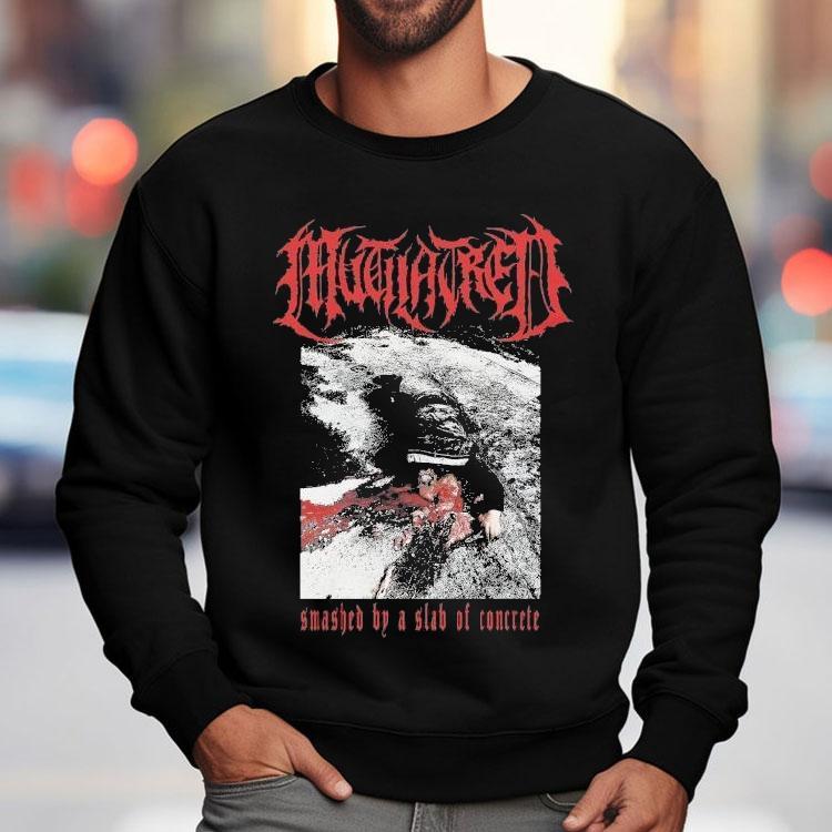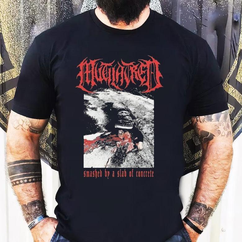 Simple style, maximum impact with Mutilatred Smashed By A Slab Of Concrete Shirt, the once pristine white shirt was now unrecognizable as it lay on the ground, mutilated and smashed beyond repair. The culprit? A massive slab of concrete that had plummeted from the sky, leaving a trail of destruction in its wake. This was not a normal day for anyone, especially not for the unfortunate owner of the now ruined shirt.