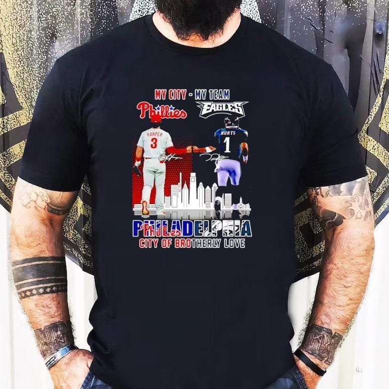 My City Harper Phillies And My Team Hurts Eagles Philadelphia City Of Brotherly Love Signatures Shirt